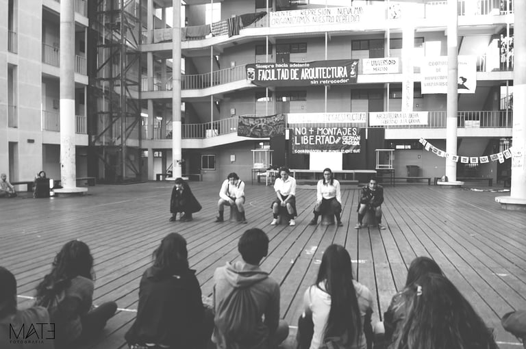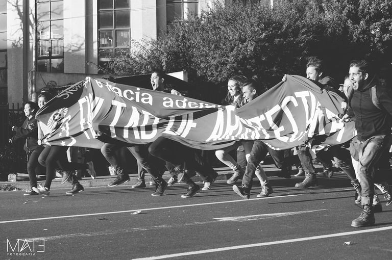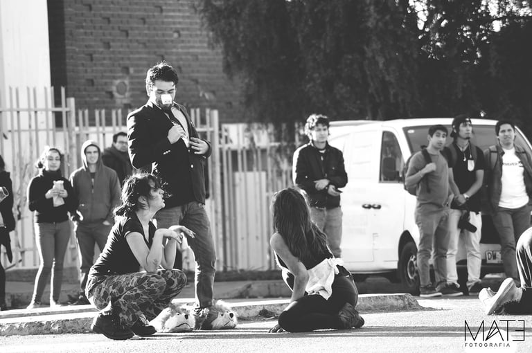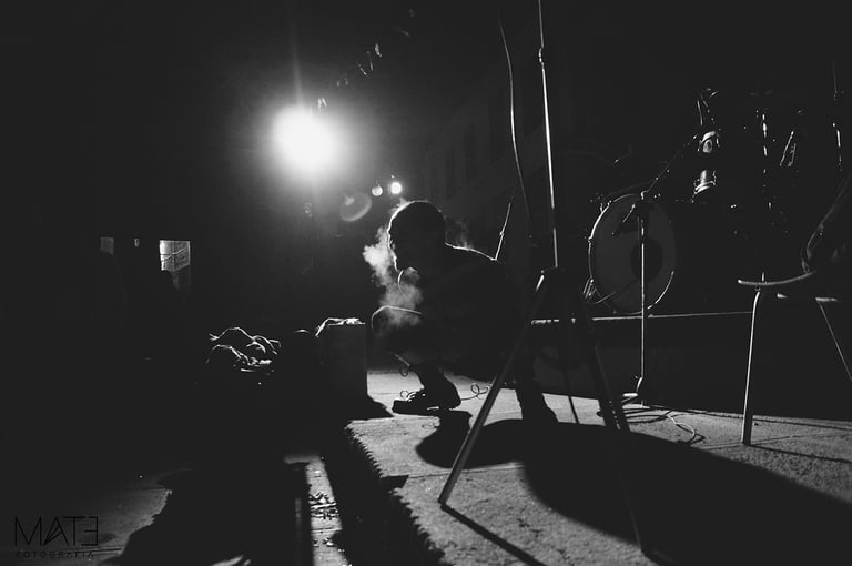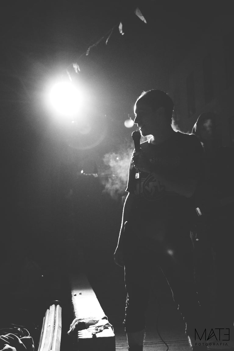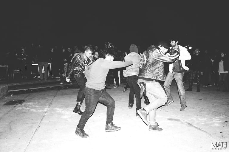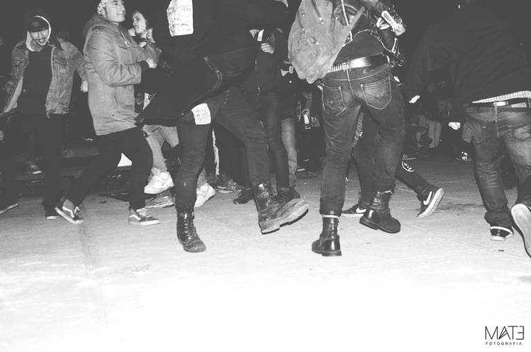 Fotografía en blanco y negro, registros del underground porteño, entre marchas, tomas, tocatas, backstage y performance.